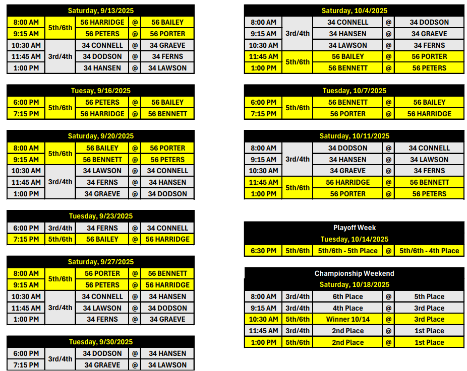 2025 - 3rd/4th & 5th/6th Season Schedule